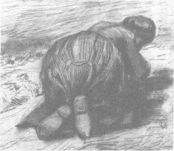 跪着的农妇(粉彩笔、布纹纸) 1885年〔荷兰〕凡·高