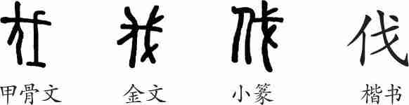 《说文·人部》:“伐,击也。从人持戈。一曰:败也。”(伐,击杀。由“人”持握“戈”会意。另一义说:伐是败坏。)