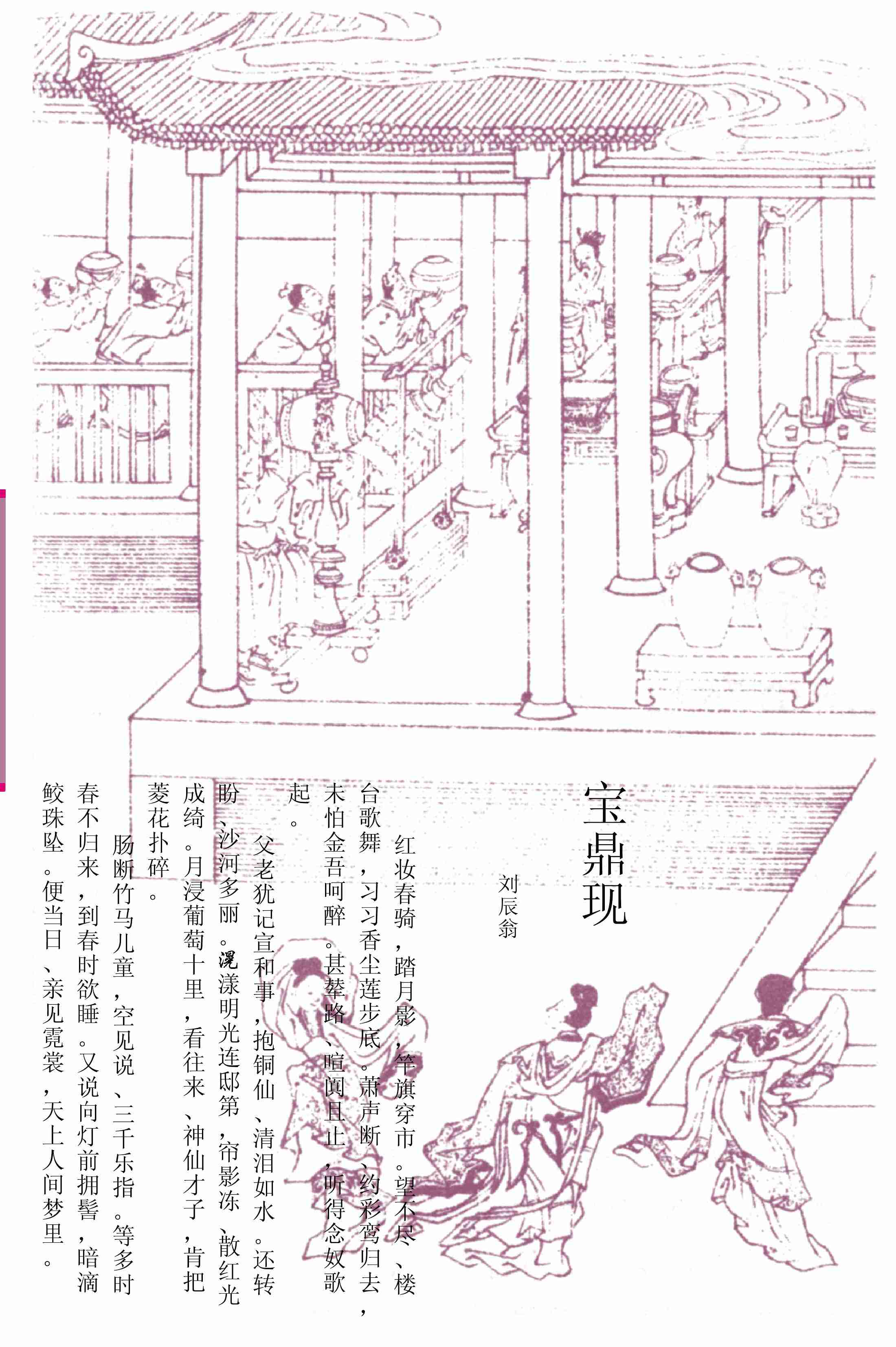 杨慎《词品补》:刘须溪丁酉元夕宝鼎现词云:“红妆春骑,踏月花影,竿旗穿市。(本词略)”此词题云“丁酉”,盖元成宗大德元年,亦渊明书甲子之意也。词意凄惋,与麦秀歌何殊。