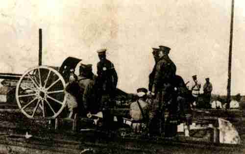 清内阁总理大臣袁世凯调派北洋军向革命军反扑。图为清军马队向汉口进发。
