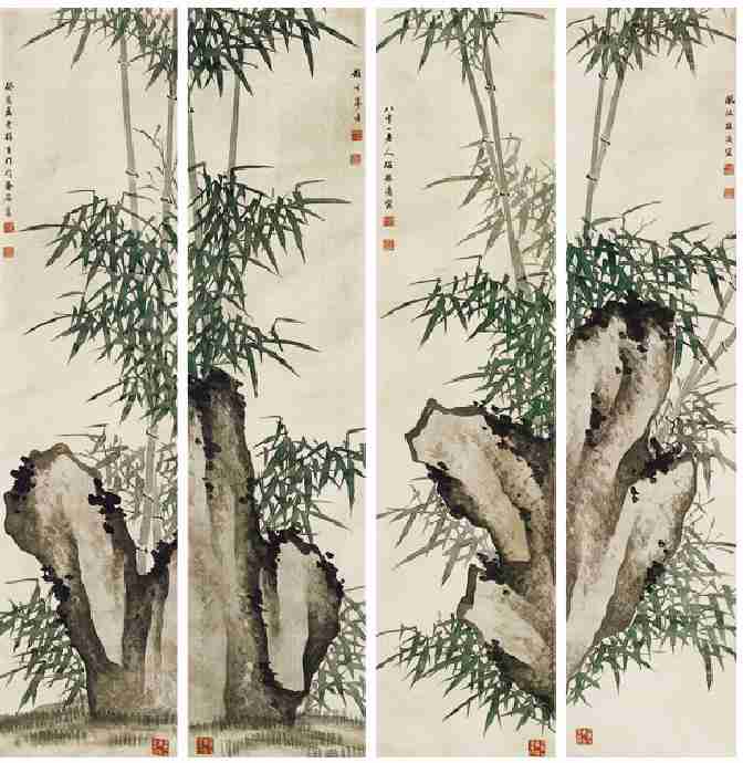 梅振瀛的画在中国嘉德、天津国拍、天津文物公司等大拍中多次亮相。天津市文物公司 2004 年春季大拍,他的一幅设色绢本竹石立轴(125.5 厘米 ×66.5 厘米)底价8000 元。2005 年 12 月嘉德四季拍卖中,其绢本竹石四条屏,每条长135 厘米,宽 34 厘米,底价为 1.2万元至 2.2 万元。2006 年天津文物公司秋季大拍,其水墨绢本竹石四条屏,每条长 147.5 厘米,宽 39.5厘米,底价 2 万元。以此为参照,梅振瀛竹石题材的作品每平尺当在1500 元至 2000 元间。而我在购买他的作品时,采取的是“立体权衡,价比三家”的策略。利用某拍卖行未能与其他拍卖行在价格上接轨的空隙,买到一件“便宜货”。