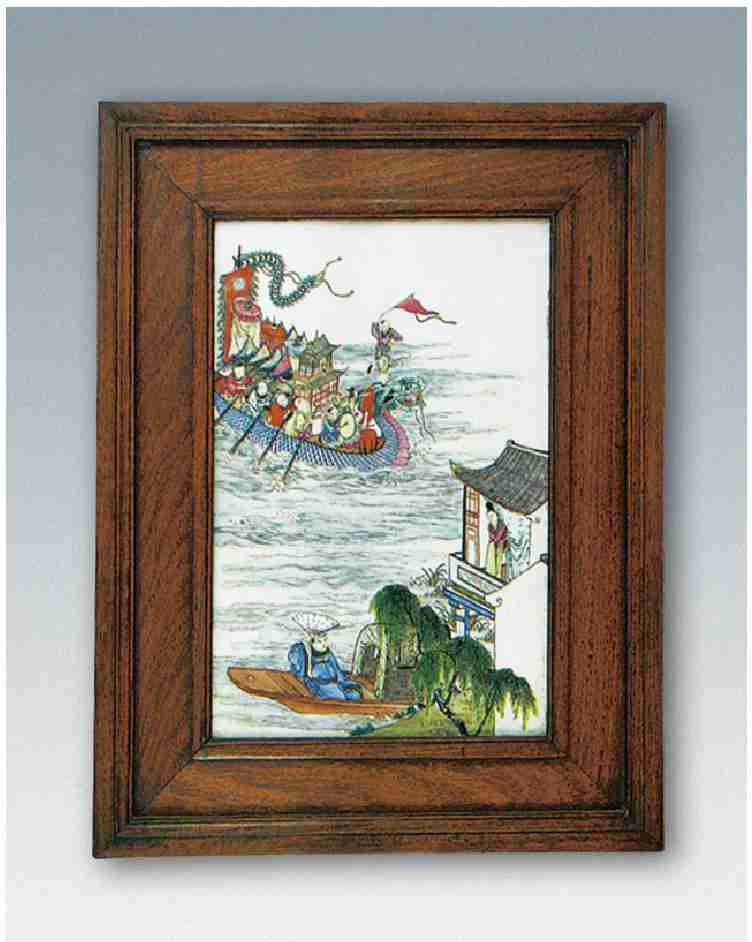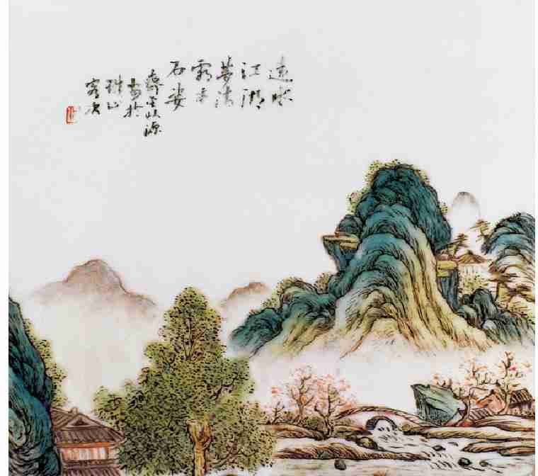 鉴定瓷板画的真伪首先要善于分辨时代特征。不同时间段的瓷板画在造型、装饰、画风、题材和烧造工艺上各不相同。如康、雍时代瓷板画大多不落款,并多饰图案边框。嘉、道、咸时代瓷板画华丽有余,生动不足,艺术水平逊于康、雍时代。晚清浅绛瓷板画是文人画家所绘瓷器。而“珠山八友”则是艺人模仿文人画家在瓷板上作中国画。掌握了这些特点,再从外观上分析它的新旧程度,就能对瓷板画的年代大体做出判断。
