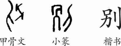“别”是会意字。甲骨文从刀,从冎(骨),会以刀剔骨上肉之意。小篆整齐化。隶变后楷书写作“剮”。汉字简化后写作“别”。
