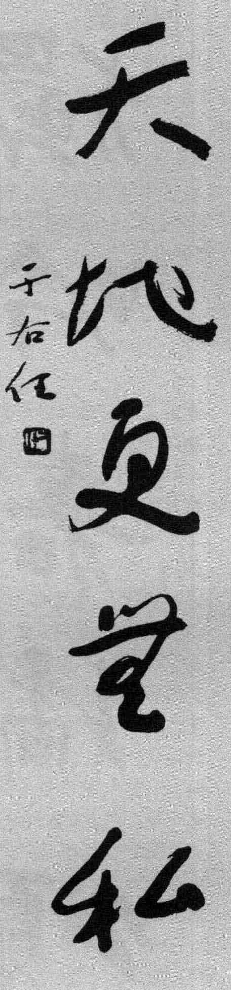 于右任书法造诣精深,有“草圣”之誉。他早年常以洒脱的木简书来写北碑,别具神韵。晚年热心“标准草书” 的研究,归依二王,追求以简便美观为标准的通用草书,并编有 《标准草书千字文》 等。此联正代表他后期草书的风韵,顾盼生姿、潇洒自如,从内容上看也颇能体现于右任的心性和襟怀。也有人评论于右任晚年的草书楹联,说: “若以代表于氏一生水平的,当不以晚年之所书为准,因虽求平淡,略嫌草率,不似其中期写碑书风既有‘气’、‘韵’,又具‘文’、‘质’。”这是从另一个角度品评于右任的书联。