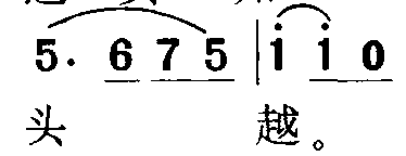 “娄山关”一曲的前奏长达四十五小节,写得丰富多彩。三个短促强烈的和弦揭示了紧张悲壮的场面,紧接着弦乐奏出一串沉重凄凉的下行旋律,大大渲染了战斗气氛,杀机四起,硝烟方散。主题在B大调上由弦乐声部中速奏出: