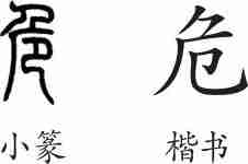 “危”是会意字。小篆从厃,从卪,会人站在高处有危险而感到害怕之意。隶变后楷书写作“危”。