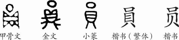 《说文·貝部》:“員,物数也。从貝,口声。凡員之属皆从員。”(員,物的数量。从貝,口声。大凡員的部属都从員。)