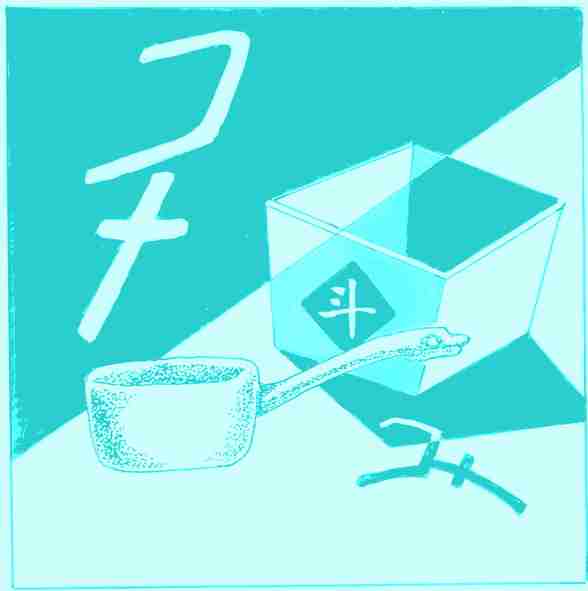 这个斗字最初指的是一种盛酒的器具。《史记·项羽本纪》说到鸿门宴上刘邦找借口逃走后,张良留下来周旋,张良说他们来时拿了玉斗一对,要送给范增,而范增却把它放在地上,并抽出剑来劈碎了。这里的玉斗指的是玉石酒杯。后来斗字又由盛酒的容器引申指盛粮食的容器,一般是方形的,也有鼓形的,大多数用木头或竹子制成。后来斗多用作容量单位,十升等于一斗,十斗等于一石。