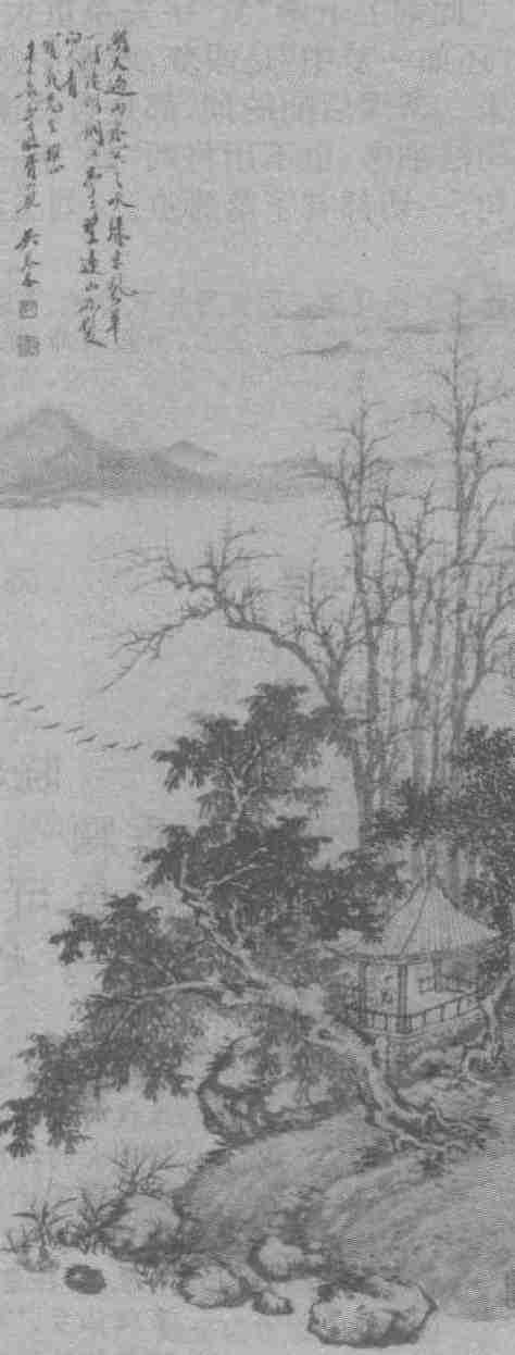 湖亭望雁图 吴琴木