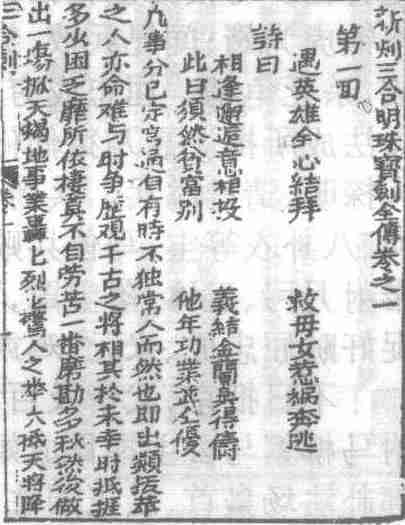 清代白话长篇侠义小说。一名《三合明珠宝剑全传》、《三合剑》、《第十才子书》。六卷四十二回。不题撰人。成书于清道光年间。
