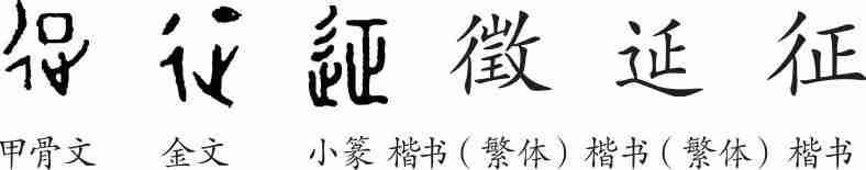“征”是会意兼形声字。甲骨文从彳(道路),从正(一只脚对着城市前进),会向某地进发之意,正兼表声。隶变后楷书写作“