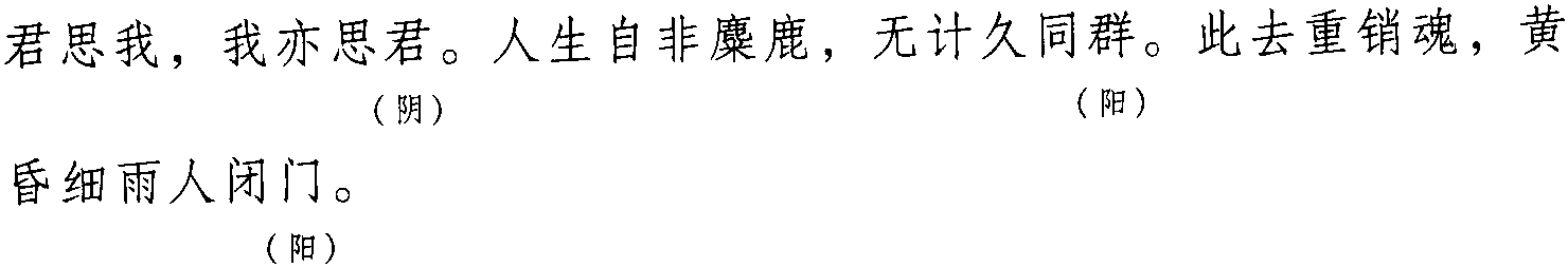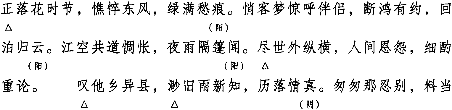 注:本词例押根部“根”韵。“论”在古韵中同“痕”韵,“痕”在现代韵中属“根”韵,故“论”亦属 “根”韵,阳平。