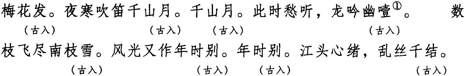 注:一、本词例押古入声“月”“屑”韵。因“月” “屑”在现代韵中属“些”韵,故全调可押些部“些”韵。