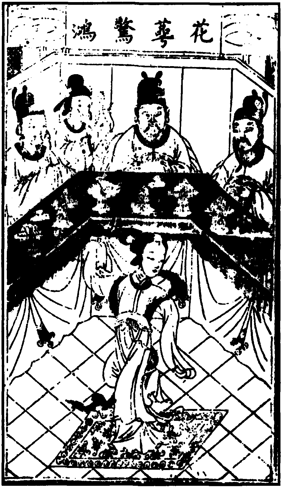 接下来的 【二犯渔家灯】 一曲由思忆转回现实,通过冷宫荒凉情境与西宫繁盛场景的对比,描绘了一幅苦乐异势、悲欢共存的宫闱图画。“分明难遣,他秦恩椱道,我自拥馀衾小簟” 几句表明了梅妃的态度,明知君王恩义淡薄,另有新宠,不由忧思郁结,只有独自拥被而眠。“只为那梅亭月上生幽赏,落得蹙损双蛾两泪悬”两句,意思是说只因为那天晚上在梅亭月下赏花,无意间与太子相遇,给了人造谣诬陷的机会,这才落到今天愁眉不展、泪眼朦胧的可怜下场。曲中重点描摹 “明月朱帘惨杀庭院” 的冷宫景象,而以简略的 “火照喧阗” 四字表现西宫的热闹场面,既符合梅妃的主观感觉,又不动声色地揭示了宫闱生活的残酷和冷漠。“我自拥馀衾小簟” 一语承上启下,引出下一曲 【喜源澄犯】 中对于梦境的细致描述。根据曲律,此处应用 【喜渔镫】 的曲牌,刊本写作 【喜源澄犯】,当属误刻。这一曲的前三句叙写了梦中的美好光景。这个甜蜜的梦境一方面透露出梅妃对于往日生活的无限留恋及对于明皇重拾旧情的由衷希望,一方面又成为伤惨现实的无情比照。“待觉来朦胧,峭然云迷雨离啼着杜鹃” 两句叙写的是醒来时睡眼惺忪、不辨真幻的情景,意谓欢情爱意恍惚犹在,耳边还响着凄厉的杜鹃啼鸣声,定下心来,方知适才是南柯一梦。紧接着的 “要见只凭假寐还相叙,甚时节,真个团圆,教我怎理花钿” 几句,将梅妃梦醒后的绝望心情铺写得至为真切。意思是说只有梦中才能与明皇欢叙,要真的团圆一时是没有指望的,我装饰打扮起来又给谁去看呢。最后两句暗用杜牧 《阿房宫赋》 “歌台暖响,春光融融; 舞殿冷袖,风雨凄凄。一日之内,一宫之间,而气候不齐” 之意,以对仗形式再度将得意与失宠的不同情势联系起来进行对比,强化了全曲的悲剧意味。承欢者志得意满,只觉四周一片春意; 失意者心沮神丧,虽同处一地,却已感秋气侵人。这里的季节体验和气候体察说到底只是主观的心理体认,曲辞而有此描写,对人物内心的挖掘已可算是相当深入了。