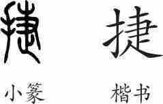 “捷”是会意兼形声字。小篆从手从疌(动作快)会意,疌兼表声。隶变后楷书写作“捷”。