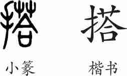 “搭”是后起字,为形声字。楷书写作“搭”,从手,荅声。
