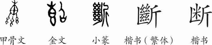 《说文·斤部》:“斷,截也。从斤,从。”(斷,截开分段。由斤、由会意。)