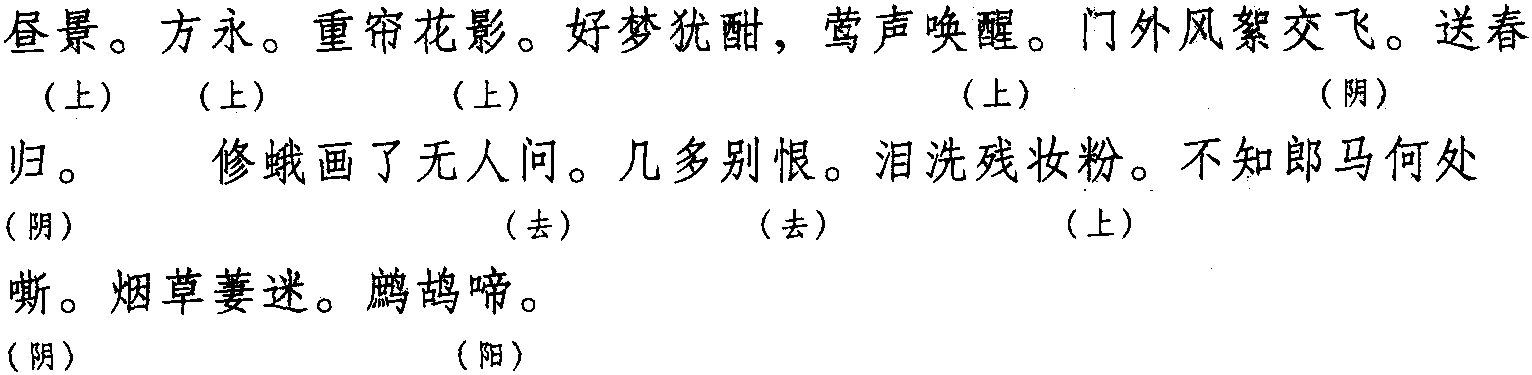 注:本词例押东部“声” 韵,飞部“飞”韵,根部“根”韵,衣部“衣”韵。 |