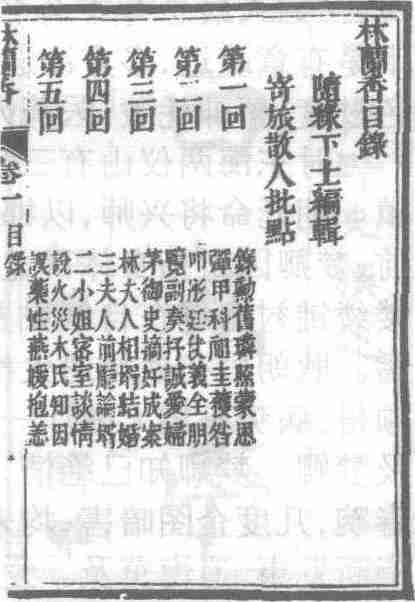 清道光十八年(1838)本衙藏板本《林兰香》目录书影