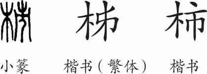 “柿”是形声字。小篆从木,声。隶变后楷书写作“柹”,俗作“柿”。如今规范化,以“柿”为正体。
