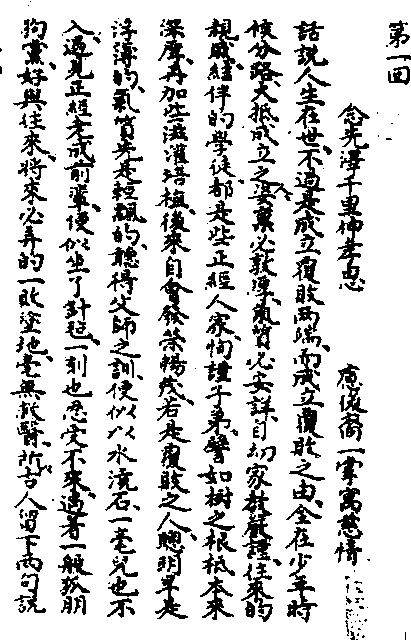 河南祥符县萧墙街谭家,祖上原是江南丹徒,四世书香相继,列名胶庠。主人谭孝移乃拔贡生,品德端方,学问醇正。续弦王氏,生子绍闻,聪明俊俏,夫妇珍爱。因念许多火焰生光人家,霎时便弄得灯消火灭,为使谭绍闻克绍箕裘,延师教子,极为细密珍重。先是请得端方正直的好友娄潜斋为师,与娄子娄朴、外表兄王隆吉共读于碧草轩。师严徒聪,甚为相得,学业日进。