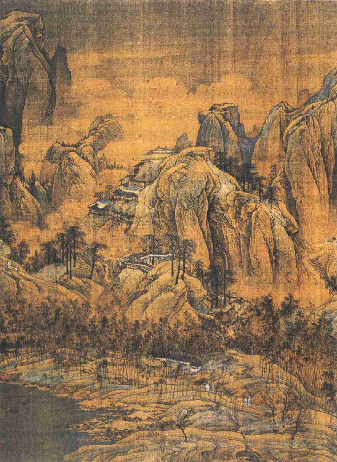 可以说,《江山秋色图》在院体气格中渗以文人画的韵致。青绿的明丽和水墨的澹雅相结合,色调上由浓郁转为轻清,标志着青绿山水由唐到宋的一大发展,也可视为大青绿通向小青绿的桥梁。