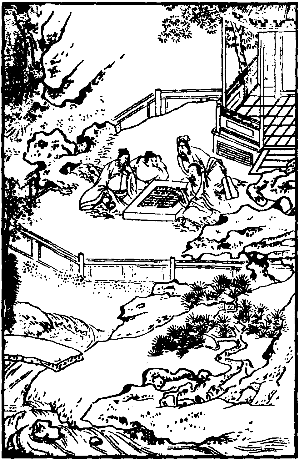 【驻马听】 急湍清漪,曲水萦回泛酒卮。列依其次,只见气清天朗碧参差。骋怀游目乐无涯,一觞一咏情何极。惠风徐吹,仰观俯察皆真趣。