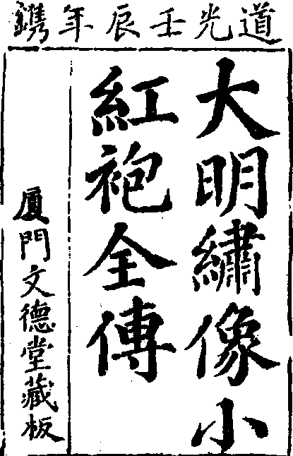 清道光十二年(1832)厦门文德堂藏板本《海公小红袍全传》扉页书影