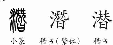 “潜”是形声兼会意字。小篆从水,朁声。隶变后楷书写作“潛”和“潜”。如今规范化,以“潜”为正体。