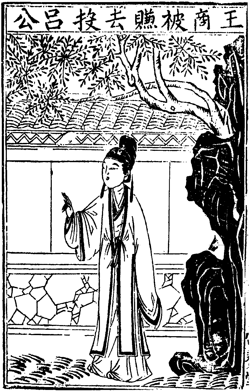 下两曲 【前腔】 通过王商和吕公之口猛烈抨击了娼家惟利是图、翻脸无情的恶俗嘴脸。前一曲中,王商结合自己的亲身经历,铺叙青楼女子虚情假意、朝三暮四的骗人伎俩,言语之间冷嘲热讽,极尽挖苦之能事,藉以宣泄胸中积怨。曲辞中“侈” 意为多; 晋人阮孚自称以一钱看囊,恐其羞涩,后遂以阮囊羞涩来喻指身乏财物,这里“囊未羞” 即是说钱还未用尽; “云归楚峡空馀岫” 暗用宋玉 《高唐赋》 巫山神女 “旦为朝云,暮为行雨” 及晋陶潜 《归去来辞》 “云无心以出岫” 的句意,比喻娼妓转与其他客人应酬而将旧日相好丢在一边; “水绕天台只漫流” 表面意思谓溪涧水绕着天台山只是空流,实际上隐用《幽明录》 所记东汉刘晨、阮肇入天台山采药遇仙女事,以喻多情者眷恋无情妓家的可笑; “多应向章台还折柳”明取唐韩翃 “章台柳,章台柳,昔日青青今在否。纵使长条似旧垂,亦应攀折他人手” 的句意来形容娼妓另觅新欢的惯技,“又抱琵琶过别舟” 则暗借唐白居易 《琵琶行》 一诗的内容寄寓同一意蕴。曲意略谓,恩客钱财多时,妓女觉得有利可图,便主动 “献红颜” 投怀送抱,卖笑呈欢。一旦囊中金尽,即掉头他往,丢下自作多情的客人独自发呆。再要找她时,早已跟随别的阔主顾去了。“多应向章台还折柳,又抱琵琶过别舟” 两句与上文 “我岂知他劣心情似风絮浮” 之语构成呼应,而 “只见那云归楚峡空馀岫,却笑那水绕天台只漫流” 两句则重言申明 “错与他守盟言磐石厚” 的意旨,近于自嘲的语势中透出掩抑不住的伤心懊恼之意。