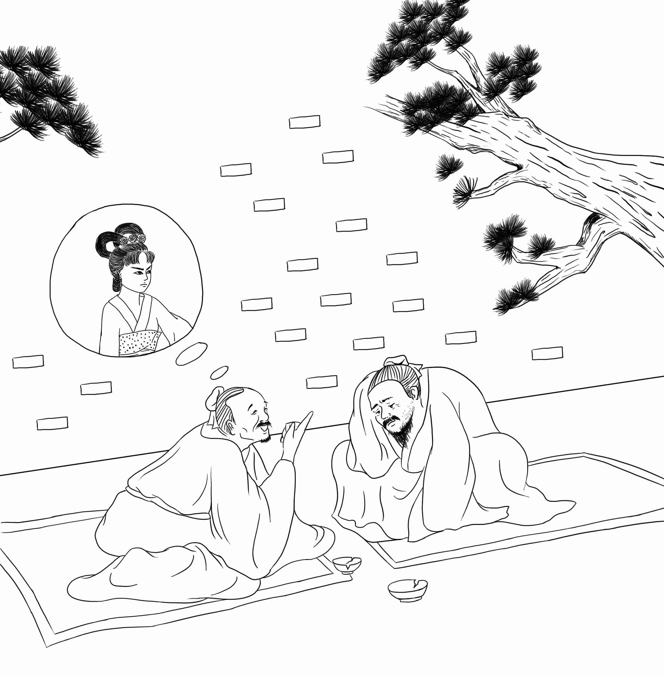 有大胡子愁家里穷,一友人开玩笑道:“据我看老兄你家中不下二千金,何必发愁?”胡子说:“二千金在什么地方?”友说:“兄脸上现有一千七百了,难道你妻子那里没有些私房?”(面上指胡子,妻子的私房指阴毛)