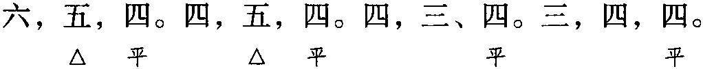 本格双片九十九字。全词同韵,平韵,韵字可阴平、可阳平。凡五字句首字为领字。