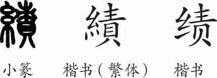 “绩”为形声字。小篆从糸,责声。隶变后楷书写作“績”。汉字简化后写作“绩”。