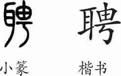 “聘”是形声字。小篆从耳(表示与听话、说话有关),甹声。隶变后楷书写作“聘”。