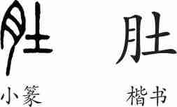 “肚”是形声字。小篆从肉(月),土声。隶变后楷书写作“肚”。