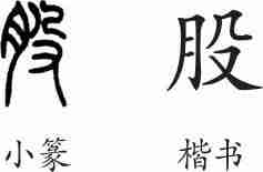 “股”是形声字。小篆从肉(月),殳声。隶变后楷书写作“股”。