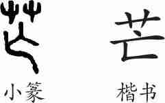 “芒”是会意兼形声字。小篆从艸(艹),从亡(无),会植物上似有似无的细刺之意,亡兼表声。隶变后楷书写作“芒”。