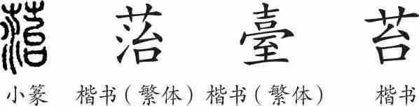 “苔”是形声字。小篆从艸,治声。隶变后楷书写作“菭”,如今规范化,以“苔”为正体。