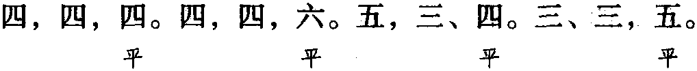 本格双片九十九字。全词同韵,平韵,韵字可阴平、可阳平。