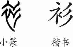 “衫”是形声字。小篆从衣,彡声。隶变后楷书写作“衫”。