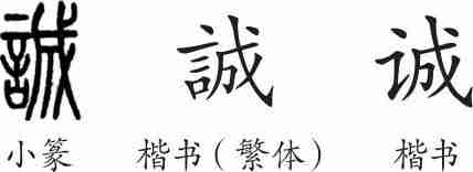 “诚”是形声兼会意字。小篆从言,成声,成兼表盟定之意。隶变后楷书写作“誠”。汉字简化后写作“诚”。
